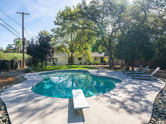 Step into a world of warmth and comfort with this impeccable family home, perfectly nestled on just under half an acre. This charming residence boasts (3) spacious bedrooms and (2) bathrooms, offering ample space for your family's needs. The heart of the home is the large, inviting kitchen, featuring elegant DeWils cherry cabinets, a double oven, and recessed lighting—perfect for both everyday meals and entertaining guests. Recent upgrades include fresh exterior and interior paint throughout and new carpet flooring in (2) rooms and newer roof. The low-maintenance backyard is a true oasis, complete with an amazing, in-ground pool, ideal for relaxing and enjoying Redding's summer days. Wonderful fruit trees too! Two Cherry trees, a Pomegranate, Olive, Lemon, Lime, Mandarin and a Bay Leaf tree! Located in a highly sought-after neighborhood, close to the Clover Creek Preserve walking trails and Sun Oaks health club, this home combines comfort, style, and convenience. Don't miss the opportunity to make this your dream home.