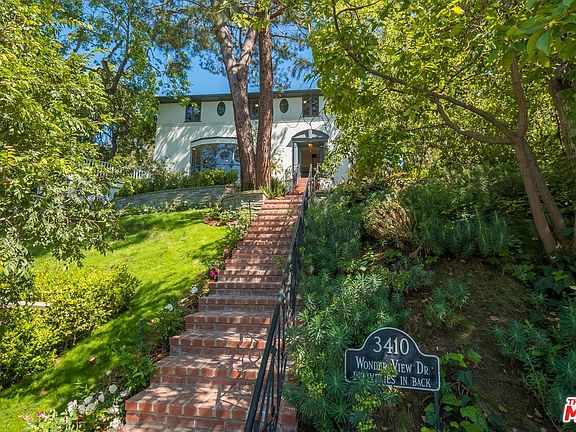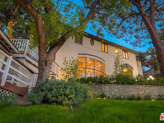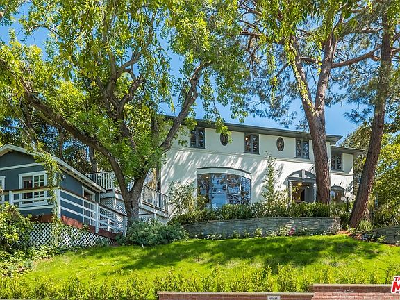Set on one of the highest points of the prestigious Hollywood Knolls, with gorgeous city lights and mountain views, sits this wonderful Hollywood Regency Traditional. Built by the Ramsey Family in the 40's, you will find signature design elements such as the large floor to ceiling bay window in the grand, step-down living room with French doors leading to an incredible entertaining deck and pool. There is a Chef inspired kitchen w s/s appliances, large center island and wonderful 'family room' area with sliding doors that opens to an outdoor kitchen w BBQ, Brick Pizza Oven, Smoker and Beer Keg Dispenser. The 2nd story features a spacious master suite with luxe bath and 3 additional bedrooms- one large en suite and 2 that share a 3/4 bath. The 5th bed off the kitchen is the perfect office or guest suite. Off a rear level private lane is the 2 car garage w direct access. A separate, charming writer's studio completes this magical residence.
