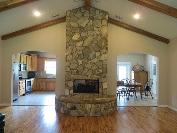 Country living at it's best. This lovely brick home sits on a beautiful 3.46 acre lot on a quiet dead end street. Inside, the open floor plan is perfect for family gatherings or entertaining. Huge great room with cathedral ceiling & a double sided soaring stone fireplace that also services the large kitchen & dining area. You'll love the kitchen with stainless appliances, granite tile countertops & custom Alderwood cabinets. The split bedroom plan provides lots of privacy & includes a spacious master suite w/double sinks & large dual head shower & two additional large bedrooms w/shared bath. A giant indoor laundry provides extra storage. Enjoy peaceful evenings on the front porch or out back on the deck. Wood and tile flooring throughout. Storage facilities & playground equipment stays