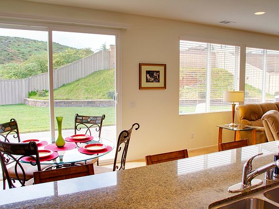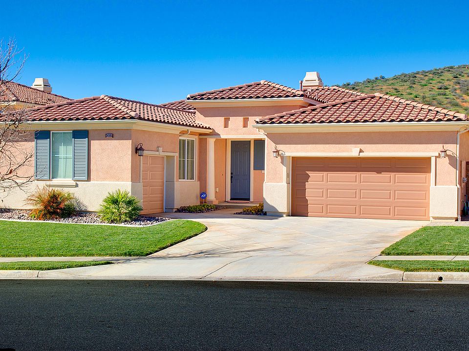 This single story home is one of the cleanest you will ever find, it's like brand new and ready to move in. Enjoy sweeping views of the surrounding hills and colorful sunsets in peace and quiet from your beautifully landscaped back yard. The back yard patio and side yard walkway are beautifully finished with pavers stone. Inside the home is upgraded with tile flooring throughout and granite countertops in kitchen. Kitchen also has a large island, built-in gas cook top, pantry and plenty of cabinet storage space. Featuring high ceilings throughout, this home has 3 bedrooms, each with it's own attached bathroom. Master bedroom has large walk-in closet. There is also a laundry room with a sink and storage cabinets, a two-car attached garage with high ceilings and direct access to the home, plus an additional one-car garage. You simply must visit this home and see for yourself how immaculate it is. To be sold with the washer/dryer and refrigerator included, this home is truly turnkey.