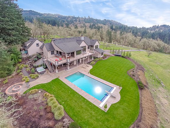 Exceptional quality abounds in this one-of-a-kind 5 bdrm Country View Estates home on 3 acres! Enjoy breathtaking views and incredible sunsets in a private, peaceful setting only 10 minutes from Eugene. The home features a gourmet kitchen, vaulted great room, stunning master suite with a huge walk-in closet. The custom bar, wine cellar, rec room, in-ground swimming pool and enormous deck top it off! One of Eugene's finest homes!