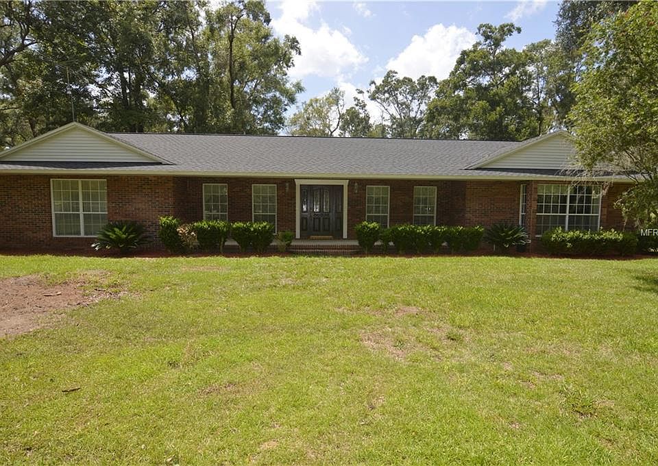 Go ahead big bad wolf blow all you like but this sturdy brick home isn't going to budge! Custom crafted home is constructed of brick and reinforced with concrete block walls giving it very solid construction and well insulated walls. 2 NEW AC SYSTEMS and a NEW ROOF were just installed in 2018. Adding to the home's energy efficiency are insulated, double pane windows throughout plus brand new double pane french style exterior doors. Great 4bed/2bath floor plan features split bedrooms plus separate dining and living rooms together with a separate family room that is complete with it's own wet bar. Open kitchen layout makes it easy for multiple people to move about and is open to the breakfast area/family room for great family interaction or entertaining. Interior features include solid wood doors, over sized floor height windows, and walk in closets. The master suite offers dual walk in closets with over sized picture windows offering great views of the spacious front yard. Bring the horses, ponies, goats, or any other animals or if gardening is your thing you'll love this great 5 ACRE YARD. NO HOA or DEED RESTRICTIONS so RV's, boats, ATV's, and other "toys" are welcome. Situated in the picturesque rolling hills of Blanton and conveniently located just 6 miles from I-75 exit 293 offering an easy relaxing commute to Tampa. ADDITIONAL 5 ACRES AVAILABLE FOR $95,000 SEE MLS#E2400568.