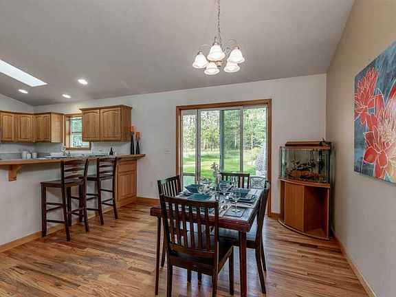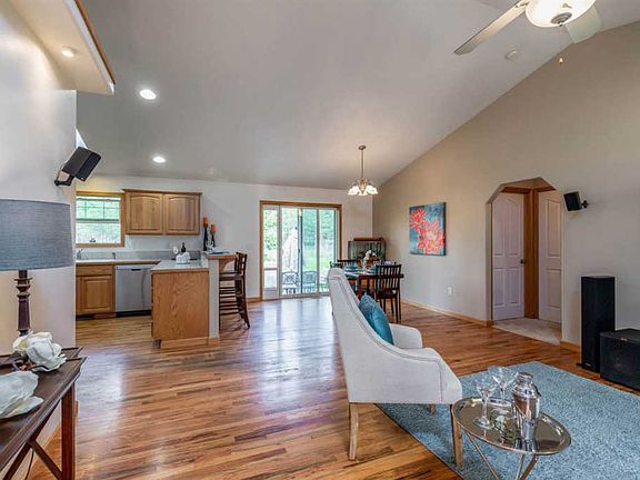 Living is easy in this spacious rancher on 10 gorgeous treed acres. The open floor plan encompasses 3 beds/2 baths w/potential for 5 beds/3 bathrooms, real hardwood floors, and a sleek kitchen that flows through to the dining room. The dining area opens up to a spacious rear patio & huge fenced backyard. The master bedroom, complete with walk-in closet & en-suite with 6ft tub and vaulted ceilings. Perfect for anyone, this home is ideally positioned on a private lot and just minutes from Riverside schools.