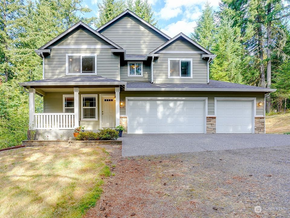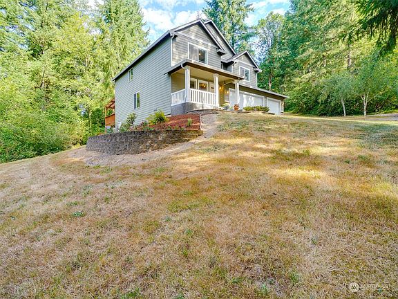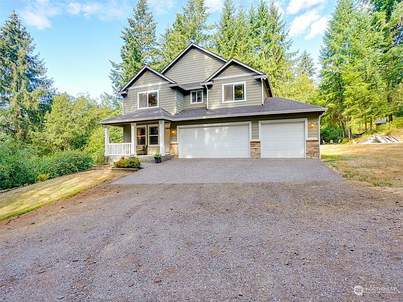 Lovely privately situated home with a seasonal creek on the property. Two tax parcels are included in the sale. The home has a nice open living room, large kitchen and a huge bonus room upstairs. Enjoy the great outdoors with 5 acres a fire pit, play structure and lots of nature. For those rainy days the covered back deck is the perfect spot. Don't miss the 3 car garage with lots of room.
