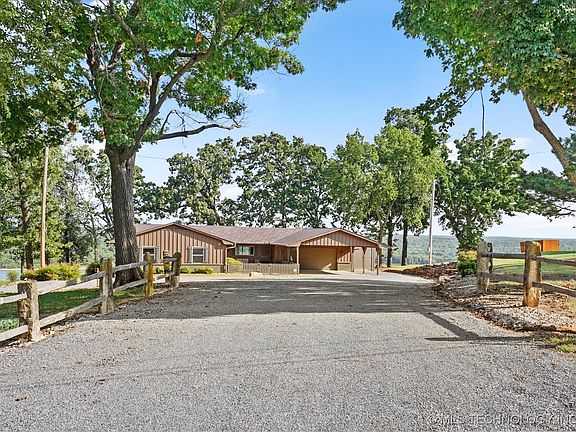 Nestled on a cliff overlooking beautiful Fort Gibson Lake with unobstructed breathtaking views, this three-bedroom two bath home await you. From the moment you enter this open concept home, it embraces the beauty of nature with picturesque views to enjoy sunsets melting into the lake and nature year around.