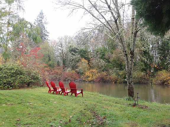 Amazing waterfront property! Fish and kayak in your backyard. Single level home in excellent condition. Gourmet cooks kitchen with views of the river. Kitchen flows to dining room and family room. River views everywhere! Formal living room with fireplace. Separate finished studio and there's even covered RV parking. This property is a dream come true.Backyard is fenced and water rights go with the property. Peace & quiet await you!