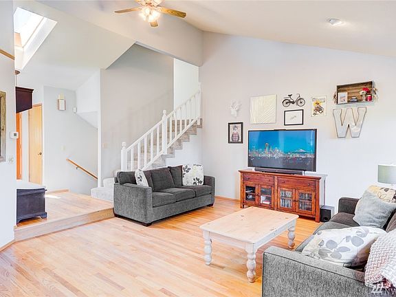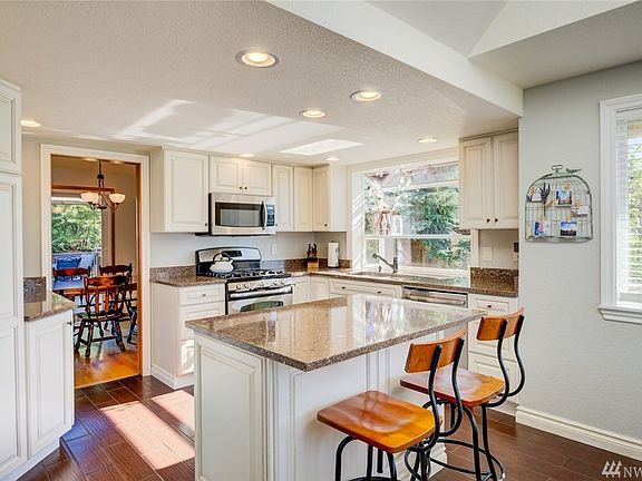 Immaculate Tri-level located in quiet neighborhood w/short commute to Boeing, I-5, great schools, & Costco! Stunning kitchen w/custom cabinets, Slab granite, & stainless appliances. Enjoy the peaceful Cascade mountain view from charming dining nook. Vaulted ceilings & lots of windows in great room fill this home w/natural light. New vinyl windows & comp roof. Large master suite w/cool barn door leading to walk-in closet & bath. RV parking for extra toys. Gas stubbed out back for Summer BBQ.