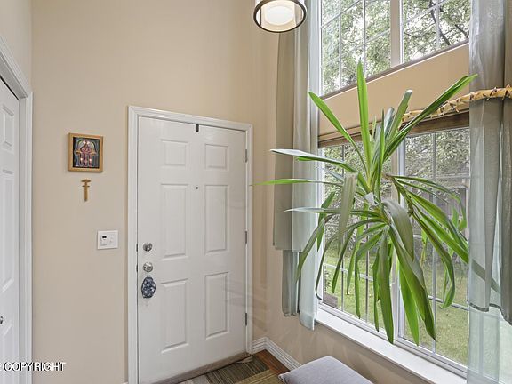 Come home to your beautiful townhome nestled in a quiet part of West Anchorage. Close to schools, shopping & the airport what more can you ask for! Great HOA that manages your yard and driveway needs year round. Contemporary layout with cathedral ceilings, huge windows, natural light provides a great space for your family and guests. Nicely treed backyard provides privacy and a nice outdoor feel.
