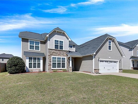 Beautiful home in Patriot Park Village with open floor plan and master bedroom downstairs. Foyer, formal dining room and living room with luxury vinyl planks. Kitchen is a cook's dream w/granite counter tops, upgraded cabinets, SS appliances, bar height/breakfast bar and seating with storage space. Master's bedroom suite has w/private bath, large walk in closet, tub and separate shower. Living room with gas log fireplace, fenced in yard, double garage, laundry room and lots of storage space. Lots of added details in this home! Easy access to Ft Bragg & I-95, close to restaurants and schools.