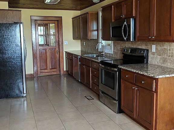 Fully restored wonderful farmhouse in a great country setting. Lovely restored wooden floors throughout and stunning varnished wooden ceiling in kitchen. Detached double car garage and workshop. Former Hoyle family farmhouse. Very large kitchen with granite counter tops throughout. All new appliances. Fully fenced and gated yard adjoins beautiful farm. 350 gallon propane tank is owned by the property.