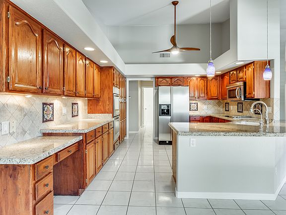 Welcome to this 4 bed, 2.5 bath abode! The curb appeal will draw you in to see what this home has to offer. The tall archways throughout the home enhance each living space. There are white plantation shutters that allow you to control all the sunrays your home receives! Your eat-in kitchen has beautiful wood cabinets, tile backsplash, stainless steel appliances, wall ovens, granite countertops, and a breakfast bar! The master suite has a private exit and a luxurious master bathroom. Step out to your oasis! The extended covered patio offers plenty of room for you and your guests to sit back and relax or hop in your sparkling pool. Schedule your showing today!