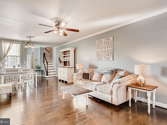 Beautiful 15' Wide Canton Town home! Beautiful wood floors, updated kitchen with granite, glass subway tile, stainless steel appliances and HEATED FLOORS! Some features include crown molding, painted brick, gas fireplace in LR, HUGE master bedroom with walk-in closet and new windows. Finished basement with Pergo wood floors, additional LR, full bedroom, full ceramic bath, lots of light and walk out. There is a deck off the 2nd BR that has water views! Bonus is a 2 year old Multi-Zone Mini Split System. WELCOME HOME!