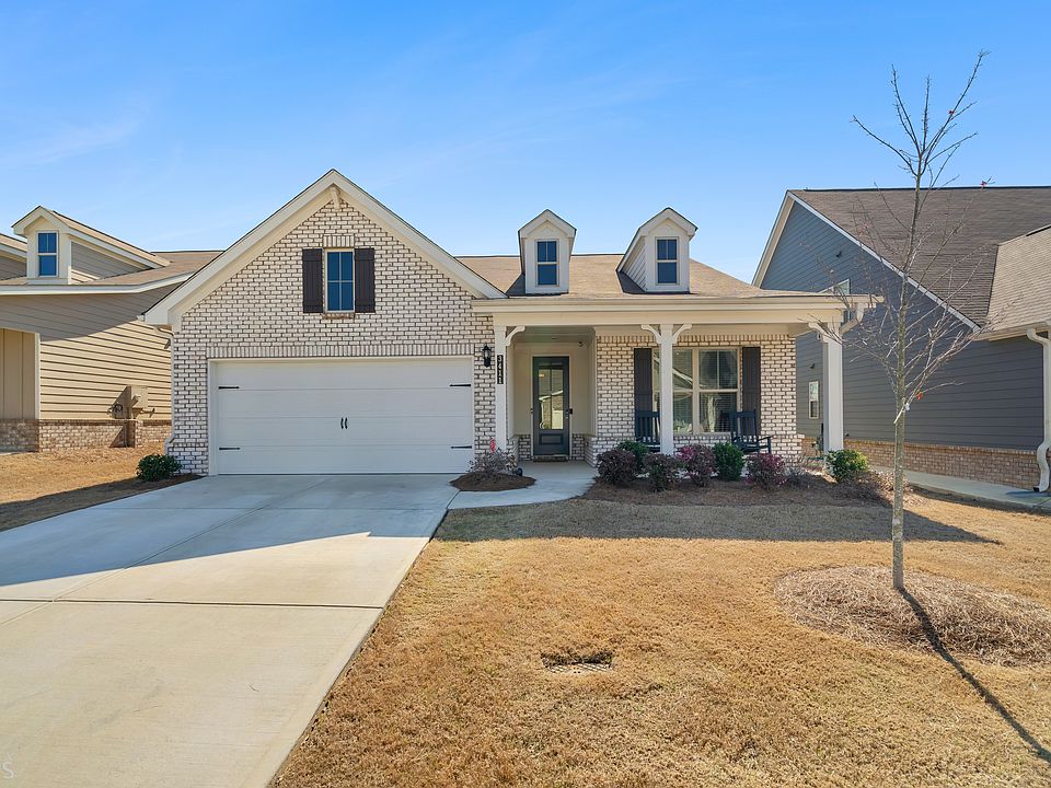 Welcome home to this immaculate open & spacious ranch style home located in Trinity Falls. Offering 3 bedrooms 2 full bathrooms, 2 car garage, and private backyard with wood fence. The kitchen in this home is HUGE & offers white cabinets, grey title backsplash, quartz countertops, walk-in pantry and stainless appliances. Upgrade EVP flooring in all main living areas and main bedroom. Owner's suite is gorgeous and offers 2 enormous walk-in closets, split BR plan and oversized FR w/stacked stone FP & reclaimed wood mantle. White brick with dark Granite shutters & doors- stunning! Great swim/tennis/pickle ball community with clubhouse, playground, Dog Park, sidewalks and streetlights very convenient to Lake Lanier.