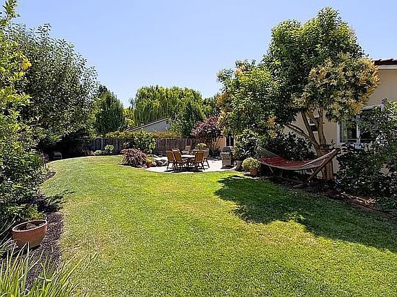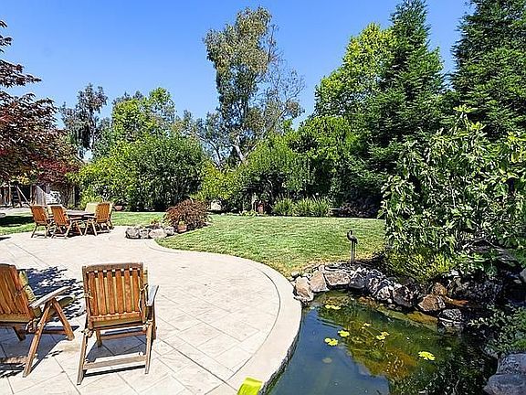 Remodeled Country View Single Story Home $749,000 Located on a private cul-de-sac close to downtown San Ramon is this wonderful Country View neighborhood. The beautiful home offers understated elegance with distinctive quality and the finest appointments plus a wonderful open feeling. The private yard offers picturesque gardens and an expansive yard. This remodeled home has been attractively updated throughout featuring an ideal floor plan for entertaining and day-to-day living. The entrance is captivating with custom dark mahogany wood door and slide light windows, the entrance is approached by a flagstone walkway that has elegant outdoor lighting. Living room offers vaulted ceilings, slate fireplace with attractive wood mantel, dual pane windows with designer drapes and views of the expansive, attractively landscaped yard. A cook’s kitchen is elegant and completely remodeled featuring attractive custom granite countertops, high end stainless steel appliances, large island with counter seating and corner sink with dual windows to capture the yard and water feature highlighted in the Koi pond. Breakfast nook is adjacent kitchen with custom cabinetry and built in window/bench seating – attractive designer curtains frame the nook and kitchen. Sliding glass door leads to patio and yard for entertaining or day to day living. Family room is open to kitchen and features pellet stove with stacked stone fireplace, crown molding, tile flooring and is perfect for comfortable living. Dining room is located off the kitchen and is spacious for entertaining and captures views of the yard. Tile floors and crown molding as well the spread bar light fixture complement this room perfectly. Master bedroom is oversized with vaulted ceilings featuring a walk-in closet, recently remodeled Master bathroom with dual vanity, recessed lights and oversized shower. Hall bathroom is attractively remodeled with stylish vanity with granite and bashed nickel faucets, shower over tub and updated lighting. Additional bedrooms are large and feature dual pane windows, carpet, updated baseboards and custom closet systems. Oversized yard is professionally landscaped and meticulously maintained. There is enough room for a huge grass play area, kid play structure, fire pit area, vegetable gardens, Koi pond and flagstone walkway, plus two generously sized side yards. Additional features: · Updated millwork – crown molding, baseboards, door/window casings · Finished garage with carpet, recessed lights, insulated garage door and amble storage. · Built in cabinetry in hallway with display cabinets and lower storage and recessed light · Closet systems in most rooms · Laundry room with custom cabinets and granite folding shelf · Alarm system (not active) · Six-panel doors · Designer colors