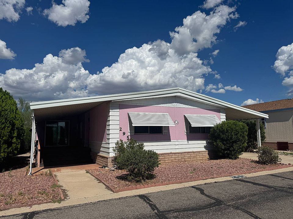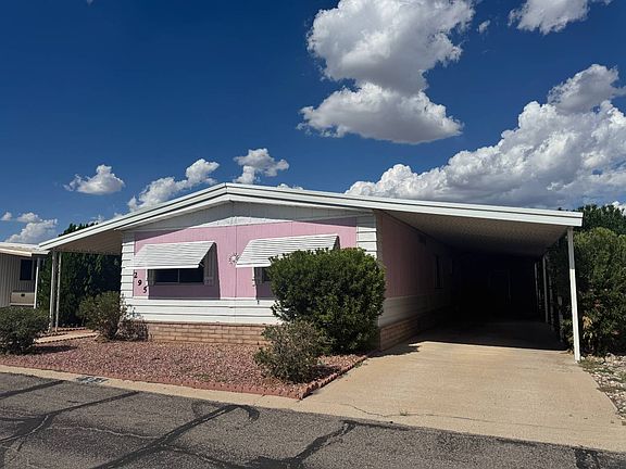 Welcome to this 3 Bedroom, 2 Bath home in Rincon Country, a 55 plus community. This home features a split floor plan with both a family room and a living room-plus a versatile temperature controlled Arizona room for hobbies, office space, or extra living area. Recent upgrades include: New front porch (2023) New carport (2023) New air conditioner (2022) New sliding glass doors in the Arizona room (front and back, 2021) Additional features you'll love: Attached shed with plenty of storage Bathroom updates with new toilets and faucets Move-in ready condition Enjoy the great outdoors from your spacious backyard or relax in your temperature-controlled Arizona room. This gorgeous home is perfectly situated on a highly sought-after perimeter lot, offering breathtaking mountain views and the chance to see birds and wildlife right from your own fenced-in yard. This home combines comfort, updates, and an unbeatable location-don't miss it! Contact us today for your private tour. Lot rent subject to change based on current rate at time of sale.