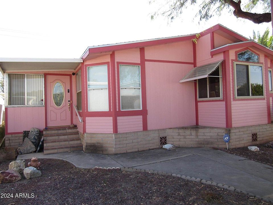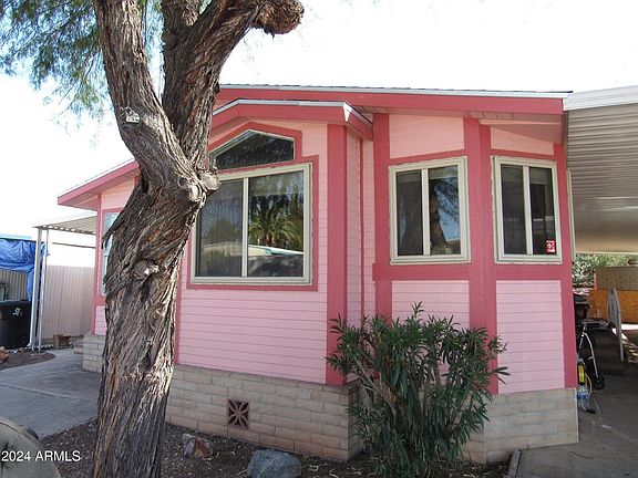 This great home has many upgrades. In 2023 the shingled roof was replaced. 2021 the exterior was painted. A/C heat pump and water heater in 2012. All underneath venting re-done. Plumbing replaced in 2011. New tile and shower pan installed in the bathroom. Water filtration system. Two storage areas with electric. Double pane windows. Pull down shades. Three tubular skylights. Four ceiling fans are all remote except the one in breakfast area. Laminate flooring throughout. Ceramic tile in the kitchen and in the laundry room. The kitchen is open with natural light from the windows. It has a breakfast area and comes with a formal dining room. Granite counter tops and center island. All appliances stay with the home to include another refrigerator in the laundry room. Front load washer and dryer in laundry room and has plenty of storage. Two pantry areas, one with pullouts. Three door refrigerator with freezer on the bottom. Microwave above stove. Garbage disposal and dishwasher. Pull outs in the cabinets. Primary suite is large size. Large walk-in closet with plenty of storage. The guest bedroom comes with a Murphy Bed with shelves. The guest bathroom has a tub. Linen closet for extra storage. Handi-cap Bar. Linen or towel closet in the hallway. Glassed in Arizona Room with two entrances. Also has vertical blinds on the windows. The large storage room in the back yard has so many possibilities. Finished drywall and with carpet squares for flooring. It has a large closet also. The other storage room has plenty of space with shelves.