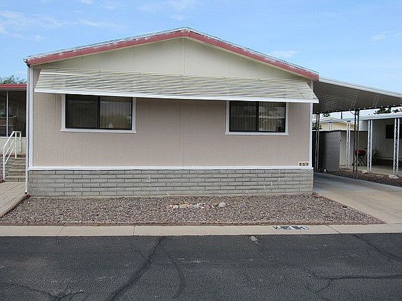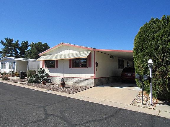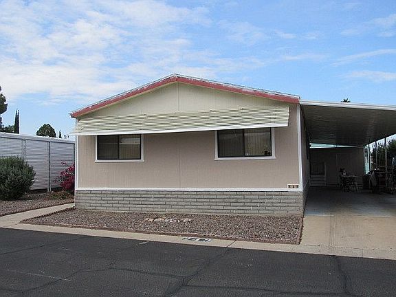 Come and discover this active 55+ Adult Community with mature plantings, manicured landscaping and all the amenities expected of a resort. Charming split floorplan 2-bedroom 2 bath home on corner lot. Mountain views from large Arizona room. Kitchen remodeled 2018. Granite counter tops, soft close cabinets, new sink, new backsplash. New flooring. Bathrooms remodeled 2020. Walk in shower in one bath. 2 ceiling fans. All drapes stay. Window AC for Arizona room 2021. All mature Meyer lemon tree, regular lemon tree, orange tree, 3 tangerine trees, 2 pomegranate trees. Land does not convey. 1980 Art Craft size 14x70. Home cannot be removed from the park. Lot rent $583.50 month Trash/security $46.00 month. Prospective buyers will need to apply and qualify with park office 520-885-5251