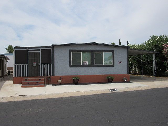 This tastefully updated double-wide w/enclosed AZ room features two bedroom two bath home in the quiet East Side Rincon Country 55+ Community. This immaculate home is being offered partially furnished and with all of the appliances. The spacious, living room, kitchen, and dining room share an open floor plan. Great for entertaining! It has central air, new wood flooring in Arizona room and bedrooms. 2 good size closets in the Master Bedroom. Master bath comes with double sinks, and shower. 2nd Bedroom has a very large walk-in closet. Kitchen is tiled and Living Room and Dining Room Area has wood flooring. No carpet. Two sheds. Sit on the nice enclosed front porch and watch the sunsets over Tucson. The Rincon Mobile Park offers many amenities. Too many to list. Come see this beauty. You will love this home! This one won’t last! Call today for an appointment.