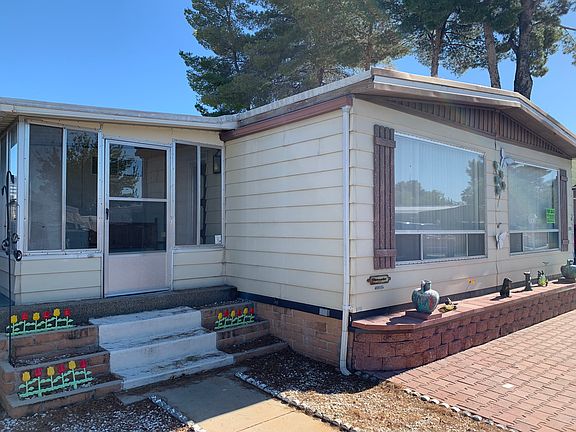 Adorable 2 bed, 2 bath double wide home in a gated 55+ community on the east side of Tucson. Home has new laminate flooring and large front windows in the living room. Kitchen is open to a formal dining area. Master bathroom has a double vanity, garden tub and separate shower. Second bathroom opens to both the guest bedroom and hallway. Arizona room is glassed in making it usable year round. Outside you will find a fenced-in patio area on the east side, a carport and attached shed on the west side with a second, unattached shed to the rear of the home. Home also includes cameras and monitor. The park offers many social activities. Park amenities include heated pools, library, billiards, fitness center, horseshoes, boat/RV storage and much more. Park has 24/7 security and is located within minutes of all types of shopping, golf courses and biking trails. *Utilities and monthly lot rent are separate*. Park approval is also needed.
