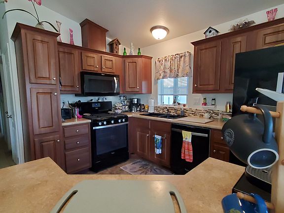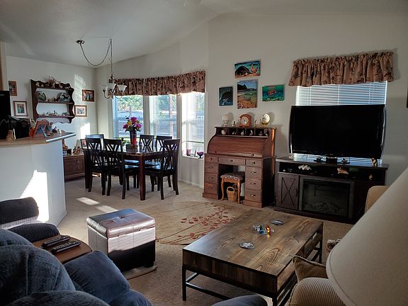 You will love this nearly new beautiful home with mountain views in a 55 PLUS gated community. 2016 Champion, 24x52 manufactured home. Move in ready with many furniture items included. Nearly new appliances. Featuring Open great room plan with vaulted ceilings, ceiling fan and bay window. Whirlpool appliances including upgraded gas range, dishwasher, refrigerator, microwave and disposal. Kitchen island with raised breakfast bar that sits four. Bay window allows lots of natural light in eating area. Master bedroom is vaulted, features large walk-in closet and master bath has double sinks, walk-in shower with two seats and linen closet. Two good size additional bedrooms with vaulted ceilings. Hall bathroom across from bedrooms. All inside doors are upgraded double panel. Laundry room includes room for a freezer or additional refrigerator. Spacious carport with room for a golf cart. Large covered patio with furniture. High energy efficient home. Low,low electric bill for 14 seer rated air conditioner. Park features a resident pool and a guest pool, also a library, exercise room,hot tub and sauna. There are a number of games like bocce ball, shuffle board, pickle ball and numerous card games. Also a pet friendly park.