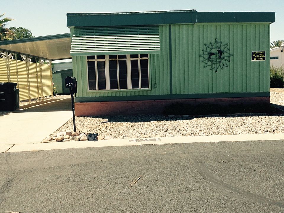 BRING ALL OFFERS DISTRESS SALE::: Seller says this home must go!!!This home has been newly painted inside, Is 2 bedroom 2 bath with laminate flooring in living room, kitchen and hall. Both the master bedroom and living room has been expanded, so lots of room. Has both central air and swamp cooler. Has enclosed Arizona room, with a fenced little yard for a pet. Beautiful rose garden, Very large shed. New water softener throughout, a real plus. Soft water throughout. Washer and dryer hookups. This lot also has two parking places for vehicles. Clean and ready to move in......Has central air..