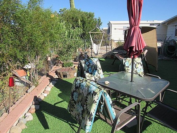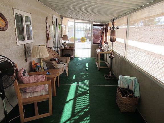 Gracious living in this one-of-a kind home in gated over 55 manufactured home park. This home has been fully updated and is move-in ready! Beds ready for planting. All newer plumbing inside & all newer peck plumbing under house. New front door w/Integrated Blinds. Handicap bars & high rise toilets All interior & exterior doors have flip handles including bathrooms. Lots of cabinets in both bathrooms. Glass doors on walk in shower in master bath. Laundry room includes lots of cabinets, & sewing machine counter. Laundry hook ups. Trane furnace, A/C, water heater & water softener installed in 2020. Painted throughout & new Berber carpeting installed 2021. New Deck off back of screened porch fully enclosed underneath. Attached shed/workshop under 2 car carport. Electric lighting under house, and floor jacks w/USB charging ports in living room. Wired for security cameras on all four sides of home. Solar lighting on all 4 sides of house. New water meter, new gas line, new phone/ Internet line to house. Large back yard is Artificial Turf & gravel, chain link fenced with 2 gates. Fenced raised bed gardens. Garden tool rack & shelving. Lots of wildlife & mountain views. Land does not convey with home. Must be park-approved.Lot rent $669 Highly motivated seller, call us for a tour of this warm, wonderful home.