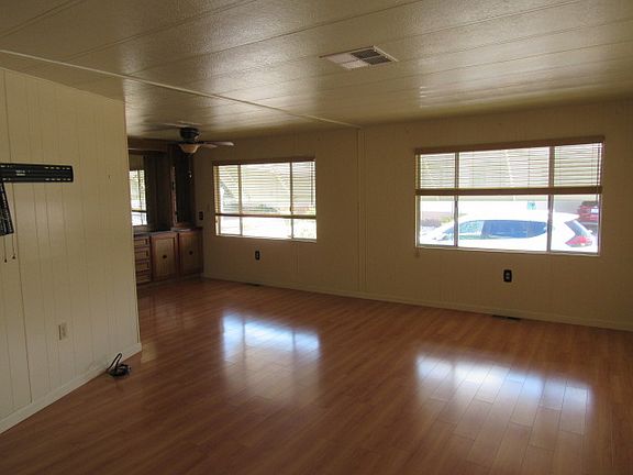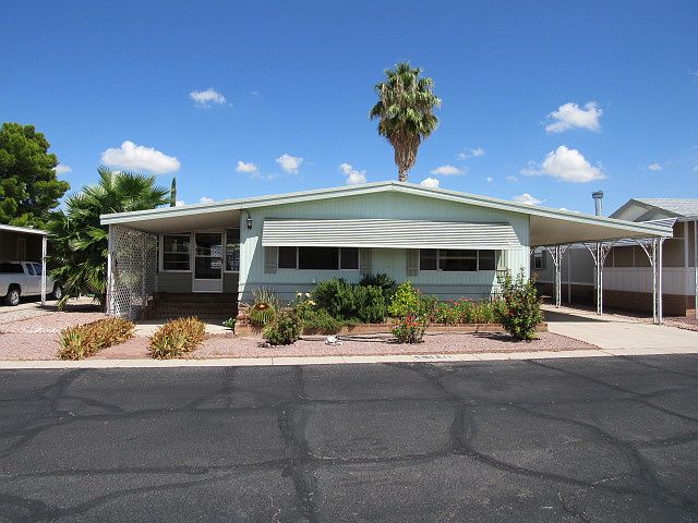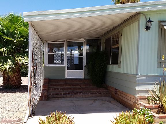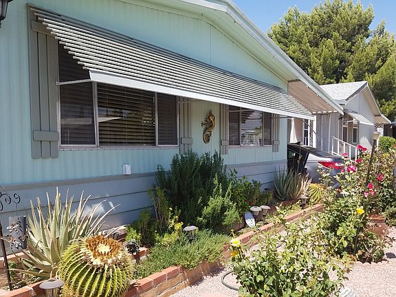 Very nice updated mobile home in a secure, quiet, gated community. Newer paint inside and out, newer kitchen countertops, new appliances in 2016. On-demand, tankless Rinnai water heater in 2015. Lennex HVAC system including air scrubber and surge protector in 2017. Roof coated in 2018. Large master bedroom, room for a king sized bed. Master bath has walk-in shower and highboy toilet. Guest bath has a tub\shower combo and highboy toilet Second bedroom has a walk-in closet. Attached Arizona room (10x24) completely glassed in with separate heating and cooling unit with access from front yard, back yard and living room. Mature citrus trees and fenced backyard. A 10x12 storage shed and a shop with electricity and a large carport. Land is not included in sale of home. Lot rent $560.75