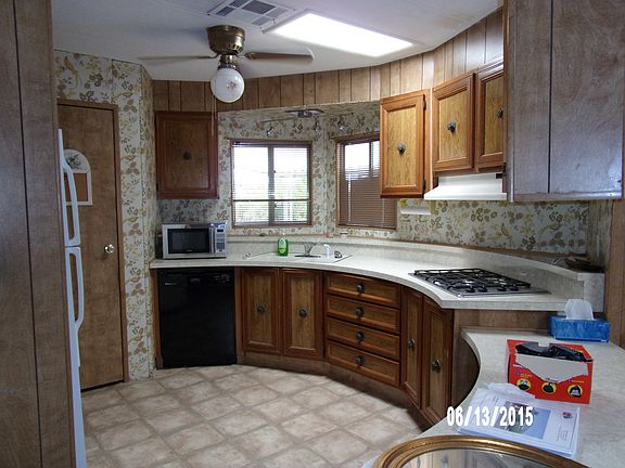Lovely home with front living and dining room w/built in hutch, vaulted ceilings. Circular kitchen w/pantry and breakfast bar open to family room with skylight and glass sliders to screened porch. Mountain views! 4 ceiling fans. Long carport Central A/C. Located in an active 55Plus Park Gated 24/7. Many amenities including 2 swimming pools, jacuzzi, craft room, Patio Bar, Exercise room, library, nice clubhouse and kitchen. This home is located in a Senior Park.