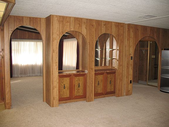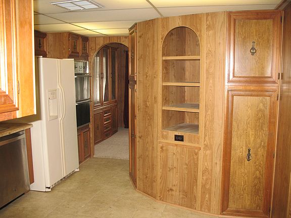 1980 Regency triple wide. Elegant home in adult mobile home park. This extraordinary home sits on a fenced lot with mature vines and flowers galore. As you enter through a screened porch you make your way into a large foyer with a coat closet on one side and bookcase on the right. The home has warm wood paneling for a cozy elegant feeling and carpeting throughout. Family room with dining area has ceiling fan, beamed ceiling and built in china cabinet is just on the right of the foyer. Large windows face East. This space is 24 feet long with ample room for entertaining. Separating family room from living room is cabinet with glass shelving and an arched “pass through”. Living room is 22 X 22 and in a nook at one end is a working fireplace flanked by bookshelves and cabinets. A contemporary entertainment center sits in one corner. Kitchen has gas stove, wall oven and tons of mellow toned cabinet space. All large appliances stay. Second bedroom has bathroom across hall with tub and shower and linen closet in the hallway. Laundry room holds washer and dryer with deep sink and ample cabinets. Master bedroom has been extended by adding a large sitting/dressing room with light paneling and large extra closet. Total of three closets. King Tempur Pedic with two remote controls. The master bath has a garden tub, walk in shower and double sinks. The home has central air conditioning, the roof has been re-coated in 2018 and has 12X18 shed with electricity. Blinds stay with home. Lot rent $538. Owner pays for utilities and water. Owner of the house must be at least 55. Park approval needed