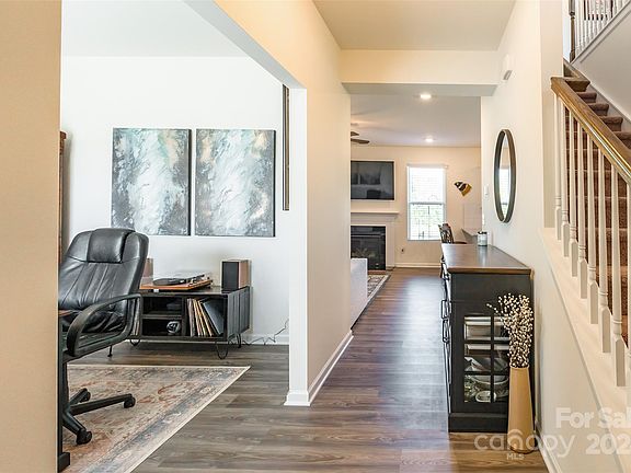 Discover the perfect blend of comfort and style in this inviting 3 bedroom, 2.5 bathroom home boasting charming curb appeal and a covered front porch. Step inside to find a cozy living room featuring a fireplace, creating the ideal space for relaxation. The kitchen is a chef's dream, equipped with upgraded features including a farmhouse sink, upgraded cabinets, granite countertops, SS appliances, a pantry, and a breakfast bar. All bedrooms are conveniently located on the 2nd floor, with the primary suite offering tray ceilings and an ensuite bathroom with a dual vanity. Plus, enjoy the versatility of a loft upstairs, perfect for entertainment or additional living space. Sliding doors on the main level lead to an extended patio & a large fenced backyard. This smart home, complete with a Ring doorbell, is situated across the street from Reedy Creek Nature Preserve and offers close proximity to NoDa and just 8 miles to uptown Charlotte, ensuring both convenience and tranquility.