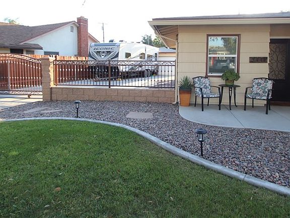 Charming single story home on quiet tree lined street. Tons of upgrades! New widened driveway and RV parking with gate. New curbing, new landscape, mature fruit trees on almost 9200 sq ft lot with lots of room for a pool! Brand new sprinkler system in front and back yard, detached 2 car garage, remodeled kitchen with granite counters, new paint, new floor, stamped concrete patio in back, new patio cover, ceiling fans in all bedrooms, double pain windows, new LED lighting, extremely well kept!!!! Walking distance to the riverside plaza and schools.