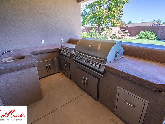 This stunning 4-bedroom, 3-bathroom home offers a spacious layout with an open kitchen, cozy fireplace, and master suite featuring a soaker tub and walk-in closet. Enjoy the outdoor kitchen and covered patio, perfect for year round entertaining, along with a private balcony for quiet moments. With generous bedrooms and stylish finishes, this home is ideal for comfortable, modern living. This home's combination of indoor comfort and outdoor features offers a retreat-like experience every day. NO SMOKING OR VAPING. NO PETS. RED Rewards Program (Resident Benefits Package): $30/month in addition to rent All Red Rock Property Management residents are enrolled in the RED Rewards program upon lease signing. This program provides rewards and incentives to our valued tenants which include things like discounts to local & national businesses, Credit Building to improve credit scores just for paying rent on time, our Home Buying Program to assist you with your own home purchase when the time is right, a utility concierge service to help connect your utilities and reduce the stress of moving, and so much more!