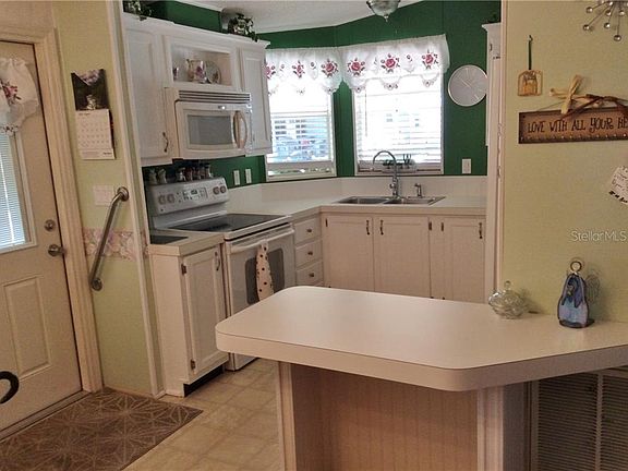 GORGEOUS FRONT FLORIDA ROOM: Large workshop/utility storage. 2 bedroom, 2 bath, over sized master bedroom with walk in closet and the master bath has a walk in shower. This home comes furnished! Porcelain sinks and marble window sills. Front kitchen with snack bar and tiled backsplash. This property is immaculate! Roof and HVAC have been replaced. Beautiful gated community with no age restriction that boasts 2 pools, 2 clubhouses and activities. NO lot rent here and the low monthly fee includes water, sewer, trash and grass cutting and so much more! Pets ok here with some breed and weight restrictions. This community is close to everything including grocery, home store, eateries, nail salon, gym and pharmacy. Easy Tampa commute and close to Wiregrass Town Center.