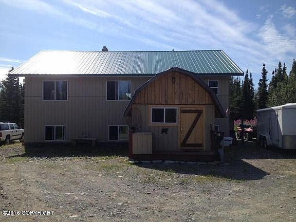 This Lovely Lakefront Waterfront Home is set up to Operate OFF THE GRID with Large Batteries and Generator as it is Very Well Built and Self Sufficient for Utilities. Home is Nearly Finished-Completely Liveable & Ready for your Personal Finishing Touches and make this House your OWN Little Get-A-Way. You will own about 1/2 of a stocked lake. The other 1/2 of the lake and the property on (continue) the other side is owned by U.S. Fish and Wildlife. This almost 9 acres would be an ideal setup for a guide, dog musher or just someone that wants to get away from it all. About 1000ft of lakefront and has a 2 story "Man Cave" or storage building that could also be updated and turned into a rustic guest house. Never have to look out your door and see another house on the lake. Easily accepts solar panels or wind generator for added efficiency and sustainability. The well and septic are state approved and the lake has been stocked with Coho Salmon since 1999 and Rainbow Trout since 2002