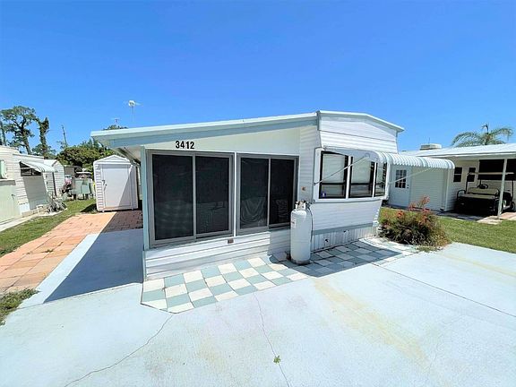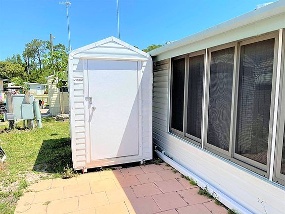 One Bed, One Bath, fully furnished home, insulated Florida Room with glass windows, screens and blinds, separate room in back setup as separate laundry room with hook-ups. Main part of home is bright and cozy with newer flooring. Kitchen has newer counters, cabinets, fixtures and updated appliances and gas stove. Bathroom has a updated toilet, counters, cabinets and step in shower. Bedroom has great closet space and lots of built-ins. Newer central A/C and AMS roof. There's a extra wide driveway with an exterior storage shed. Move In Ready!