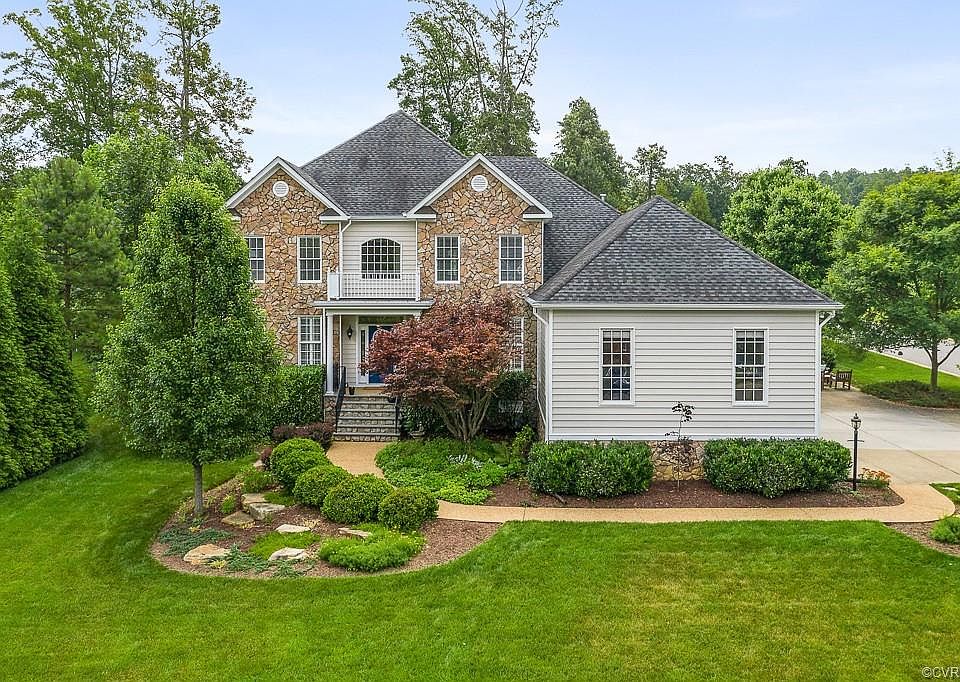 Wonderful 5 bedroom, 4 1/2 bath home, situated on a corner lot with stone accents & lovely curb appeal in sought after Kings Farm! Inside, you'll find a formal dining room and office gracing the front of the home boasting hardwood floors & moldings. The spectacular 2-story family room offers a stacked stone fireplace & plenty of natural light from the palladian windows. You'll love the eat-in kitchen with granite counters, gas cooking, & double wall ovens. Plus, there is a butler's pantry with a wine cooler! The 1st level master suite offers vaulted ceiling, french doors to a sitting area & master bath with a brand new tiled shower. 3 generously sized guest rooms, two full baths & a laundry room complete the 2nd level. The 3rd level makes a wonderful rec room or teen suite offering 2 closets, a full bath, & a walk-in attic for additional storage. Enjoy quiet evenings on the patio overlooking the beautifully landscaped and private, fenced-in yard. This home is complete with a 3 car garage, irrigation & is wired for a generator. Enjoy a short walk to restaurants & Robious Landing Park! Top rated Chesterfield schools & easy access to 288 make this home a perfect choice!