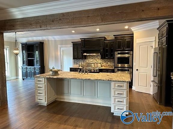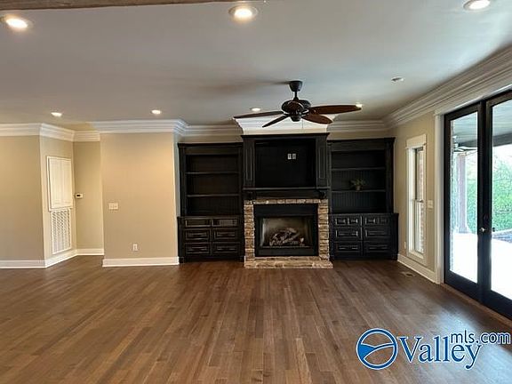 Spacious living at your own tranquil retreat all on 1 acre! This completely updated home boasts 3810 sq. ft., security cameras, engineered HW flooring, crown molding throughout. Open kitchen offers KitchenAid appliances, including new refrigerator, custom build ins, wine rack, farm-style sink, walk-in pantry and gas cooktop with tile backsplash. Look out over your 20x40 in-ground pool, (new liner) and pool house w/outdoor wet bar, granite countertops, gas log fireplace, pool equipment storage and 1/2 bath, perfect for entertaining in style. Plenty of room upstairs for private office and game room or another bedroom with full bath! Two car garage. Lake Guntersville is only steps away!