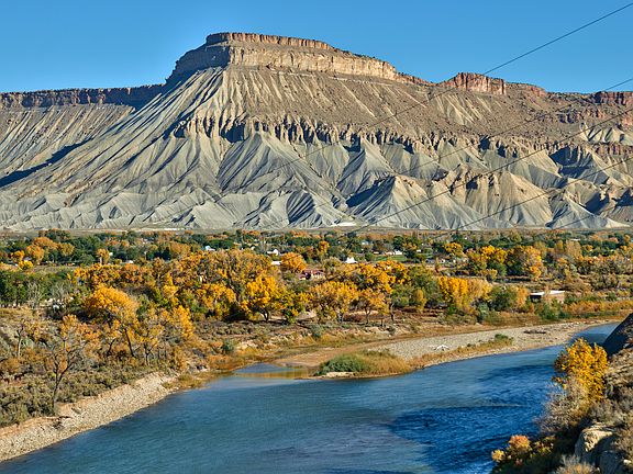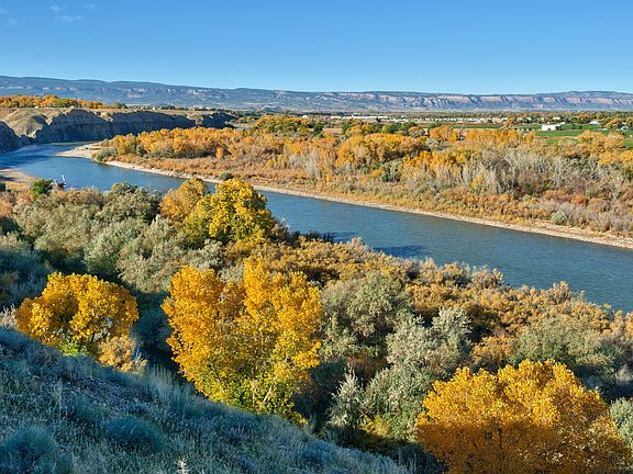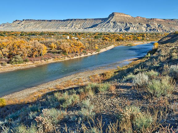 Here's your chance to own a truly one-of-a-kind property in Palisade/East Orchard Mesa, Colorado. With 13 acres overlooking the Colorado River, you will enjoy one of the most superb, unimpeded views of the Grand Valley from this stunning property. The Tuscan-style home features 3 levels of updated sophistication, with an artistic flair, including tile floors, rustic wooden ceiling beams, interior arches, custom iron stair railing, exterior patios and courtyard, and views out of every window. There is a crushed granite path encircling the bluff site, with a built-in bench and fire pit overlooking the river. Professionally designed native landscaping and a charming courtyard that is ready for a creative touch! With a 2 car attached garage, and a barn with concrete floor, one overhead door, and upstairs storage. There is also a corral and plenty of room for animals.