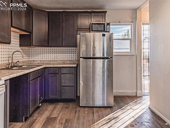 This updated ranch-style home in the desirable Highland Park neighborhood of South Pueblo offers comfort, style, and plenty of space. Featuring recent upgrades throughout, including solar panels, a newer roof, newer central air, fresh interior paint and new vinyl flooring, this home is move-in ready. Key features include a renovated kitchen with newer cabinets, countertops, and luxury vinyl tile, along with updated bathrooms featuring newer vanities and toilets. The main level offers two spacious bedrooms, while the basement provides a large bedroom with a walk-in closet, a full bath, and a sizable family room for additional living space. The large unfinished utility room provides ample storage options. The exterior boasts rock landscaping in the front yard, a carport with additional parking for cars or an RV, and a large backyard with an uncovered patio, a storage shed, and a fenced area ideal for a garden or dog run. With convenient access to local amenities and ample parking, this home is a perfect blend of modern updates and practical living.
