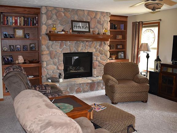 Grass Lake! Awesome 3 bed 2.5 bath ranch home on 2.5 acres!!! Living room has a raised fireplace and built-in bookcases on each side, formal dining room, large kitchen with lots of cabinets and an island with an eating space, huge 1st floor laundry room adjacent to the 1/2 bath, fabulous master suite with walk-in closet, a tiled master bath featuring double sinks, a garden tub and a separate shower! Lower level features a high end finished w/o basement, sewing and craft room gigantic shop area. Built in shelves offers lots of storage, between living area on the main floor finished lower level well over 3200 sq ft! Multi level covered deck overlooking the beautifully landscaped grounds! That's not all!! In addition to the 2.5 car attached garage there is a separate 24x40 pole building with a second covered patio. WOW! You are going to love living in this HOME!!