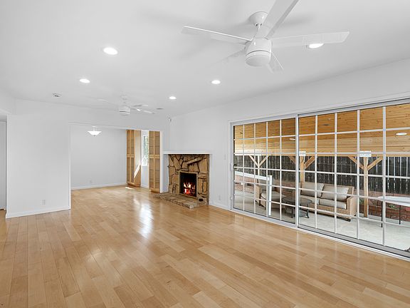 Spacious home in a great location. Formal entry, large kitchen with custom cabinetry, direct access to the rear deck and patio. The living room is opoen to the formal dining room with fireplace and direct access to the side patio area. Both patios are covered. There are three bedrooms off the hallway one with a full bath that can be shared and the front bedroom has its own 3/4 bath. Amenities include new windows, new interior paint throughout, wood flooring throughout, recessed lighting, ceiling fans throughout, central heat/air, lots of natural lighting and Mountain views. Attached garage with laundry in garage. House is situated at the bottom of the driveway. Plenty of street parking on the culdesac. This location is central to all local cities including Montrose, La Crescenta, Pasadena, Downtown Los Angeles and more.