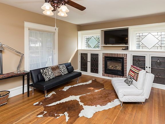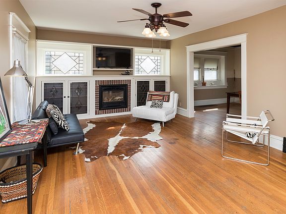 Welcome to this historic 4-bedroom home, where classic charm meets modern comfort. The main floor showcases beautiful original hardwood floors, a welcoming living room with gorgeous built-ins surrounding a gas fireplace, and a spacious dining room perfect for gatherings. The large kitchen offers plenty of space, complete with a powder room tucked neatly in the corner. Upstairs, the primary suite boasts a private bath and laundry for added convenience, along with a full bath serving the other bedrooms, including one with a delightful sunroom or traditional sleeping porch. A finished attic provides a versatile bonus bedroom, while the large deck overlooks a fenced backyard ideal for outdoor fun. Enjoy a relaxing swing on the expansive front porch. Detached 2-car garage. The unfinished DRY basement, complete with a second laundry, offers plenty of storage. All appliances are included, making this home move-in ready and full of potential! Home is in the NFC and InvestDSM eligible areas.