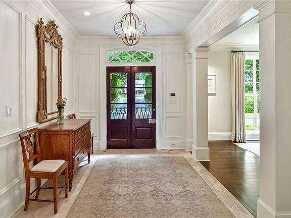 Elegance defines this Tuxedo Park home complemented by its beautifully landscaped 1.165 acre park-like setting. This gracious six bedroom home has had recent extensive renovations, including the deluxe kitchen, glamorous master bath and closet, first floor guest baths and private backyard. Special features include fresh, light-filled interiors, a heated saltwater pool, blue stone courtyard, kitchen garden, main floor master suite with office, 9.5' coffered and coved ceilings, a generator, parking court, fenced back yard, and finished terrace level.