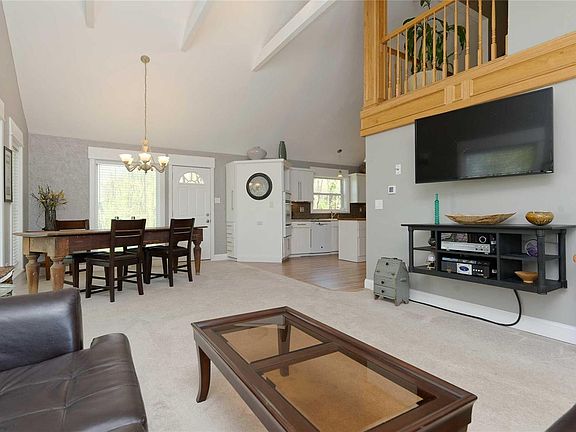 Custom built multi level home in a beautiful 1.59 acre wooded setting**Sharp, spacious 3 brs 2.5 baths, oversized 2 car garage**Step into the vaulted living/dining/kitchen space supplied w/ lots of natural lighting & view**sharp updated kitchen, gray glass back splash, gleaming counter tops with a butcher block topped center island**Breakfast area is tucked away with a convenient powder room***upstairs is the large mastersuite with walk in closet, double glass shower**private guest room, full bath & loft 3rd bedroom with armoire that looks over the vaulted area, ideal for hobbies, extra guests and den**level down from the main is the huge laundry/storage room and office, then stairs to the walkout recreation room w/large bar, marble fireplace a perfect for entertaining** The grounds are private along with an outdoor area that now houses a firepit. Sq ft in the tax records do not reflect the finished lower level. 4 levels of finished living. Home warranty free for the buyers