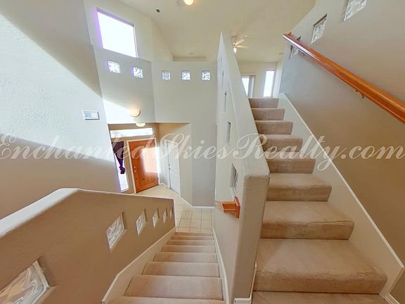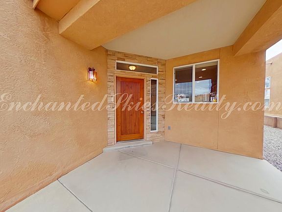 Beautiful Pulte Home with Many Unique Features! *Master Suite on 1st floor! ~Rio Rancho Located in the lovely Stonehenge High Resort community where all of the homes are nice! This home will have you from "Hello" with a large, polished wood door and tile entry to start. The tall doorways have a Tuscan design, the stairwell has intriguing glass block and ledges for decorating or plants. The 1st floor truly has everything you need to live comfortably in this home. A large open Kitchen with a new refrigerator, lots of natural light and quaint spice boxes, glass block below the cabinets providing natural light, there is a built-in plate rack, a wine larder, wine glass holder and lots of cabinet and countertop space. Making this kitchen perfect for the entertainer or family chef. A separate Dining Room is large enough to fit your needs with tall windows a breakfast bar area and opens to the living room, while still offering moderate separation. The living room has soaring ceilings, surrounded with windows, access to the patio and a cozy gas fireplace. Nothing is better than living in a 2-story home with the Master Suite on the 1st floor! This Master Suite has a sliding door to the patio and all other walls are available for furniture placement. Because...the walk-in-closet in in the master bath along with a jetted tub, separate shower and double sinks. There is also guest powder-bath and large laundry room with plenty of cabinet space on the 1st floor. The second floor is just as comfortable with a large loft, a reasonable large balcony with lovely views of the Sandia Mountains. There are two bedrooms on the 2nd floor, both with nice separation from each other and a full bath with a window and added character. The low maintenance backyard faces walking trails and there are no homes directly behind you for added privacy. * This home is Close to Several Hospitals, shopping and dining. Rio Rancho High Schools QUALIFICATIONS: $40 application fee per adult Renter pays all utilities No Smoking No Criminal No Evictions Credit Score 640+ Combined Income 3x amount of Rent