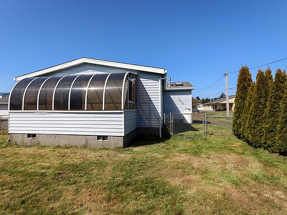 3 bed/2 bath mfr home on 0.21 of an acre. Bonus sun room off of master. Fenced front/side yard. Mature landscaping for privacy. Carport and covered back patio with small workshop/storage area. Open floor plan. Heat pump for comfortable heat/cooling and also has a nice free standing propane stove. Easy to show. Home has been vacant. Call for appt.