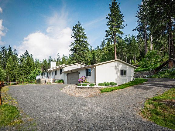 Retreat to your own 5.5 acre mountain haven. Minutes away from Post Falls, surrounded by North Idaho forest, this 4 bedroom, 2 bathroom single-level home combines close-to-town convenience with rural privacy. Enjoy the mountain vista from the patio, surrounded by your own finely maintained lawn, cultivated stonework landscape, and fruit trees. This 1956 sq. ft. home has open-plan living, an immaculate, up-to-date kitchen with granite countertops, beverage nook, and a new commodious master bedroom suite. Stay snug in the winter with 3 sources of heat: the wood stove, radiant ceiling heat and a heat pump. Two extra rooms off the garage provide generous storage and office space. This home has been beautifully well-kept, and is ready for you to move in with pride of ownership.