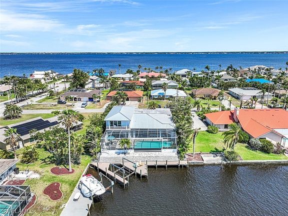 Stunning, picture-perfect, and TRENDY 5 bed 3.5 bath home is the PERFECT rental investment!! Ideal boater location, in a quiet neighborhood and with 2 minute access to the Caloosahatchee River.This home offers spacious and privately spread out bedrooms, each with their own fun and unique theme/ color scheme that will captivate your senses.Master suite offers a stunning view of the infinity pool and has a walk-in closet.Pamper yourself in the master bathroom which offers a free-standing tub, walk-in shower, and a gorgeous double vanity.Downstairs has charming, aesthetically pleasing king-sized guest rooms.Guest bathroom offers a large walk-in shower, and a separate powder room that connects to the pool area.Chic home with tasteful, trendy dining areas both inside the home and on the lanai.Highly favorable western exposure allows you to enjoy the most stunning Florida sunsets, while lounging in the living room or on the lanai.VILLA GRACE is equipped with a modern built-in kitchen with accent lighting and high-end BOSCH kitchen appliances.Enjoy the fresh Florida air and sun while using the outdoor kitchen with built-in barbecue, hood, fridge, and sink.Boat lift and boat dock are included.Takes a short drive or a boat ride to get to nearby shopping centers, bars, or restaurants. Benefit from quick access to Fort Myers.