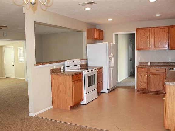 You will love this "Open" floor plan. Kitchen opens to living area, dining and 2nd living area. Oak kitchen has a lot of storage & good counter space. Generous sized bedrooms with ceiling fans in each. Good closet space in two bedrooms and great closet space in the master! Master shower is just a few years old and oh, so nice. Off the 2nd living area, there is a open patio and a covered patio/deck area. Large 2 car garage with storage. More photos to come