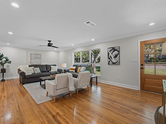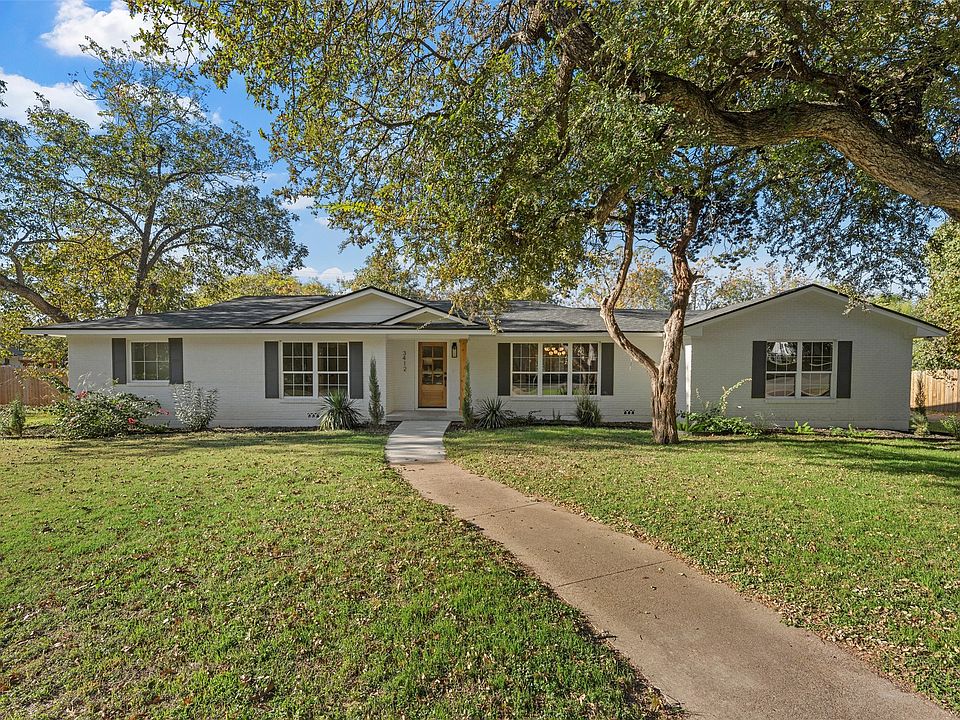 Beautifully renovated from top to bottom, this 2,196 sq. ft. home showcases exquisite taste and thoughtful design throughout. Featuring two spacious main suites, each with its own en-suite bath—including the converted garage space that creates an additional main suite perfect for a mother-in-law setup—plus an additional bedroom and full bathroom, this home offers exceptional comfort and flexibility for a variety of living arrangements. The stunning kitchen is truly the heart of the home, boasting refined details including a custom wood-trimmed vent hood, pull-out spice rack beside the range, built-in breakfast nook, and an efficient pull-out drawer pantry. An additional dining room—with French doors leading to the expansive patio—creates seamless indoor-outdoor flow for entertaining. The large living area is filled with natural light from generous windows that overlook the lovely front yard. A third bathroom features remarkable tile work carried into the shower for a spa-like finish. Outside, enjoy a spacious deck perfect for gatherings, plus a concrete pad that offers additional parking or flexible outdoor use. The property backs up to a serene wooded area, providing privacy and tranquil views. Located in a low-traffic pocket of northwest Waco, this home offers quick access to Waco Regional Airport, Lake Waco, I-35, Cameron Park, and many more amenities.